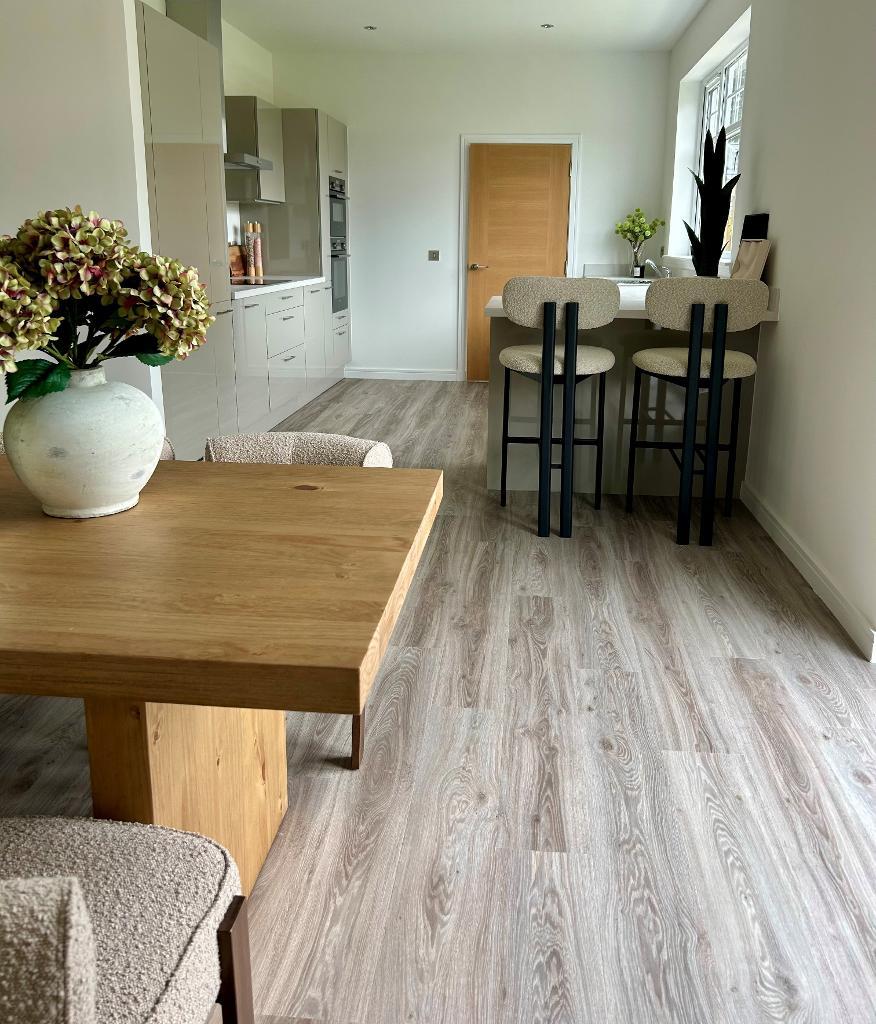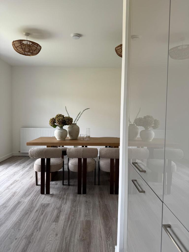 The German designer kitchen is fitted with premium Bosch and Hotpoint appliances and the addition of a breakfast bar provides another
